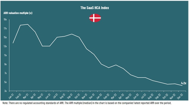 SaaS update December 2022: Danish ARR sector median multiple declined to a new lower level
