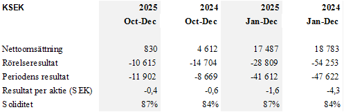 Den totala nettoomsättningen minskade med 7 %, främst till följd av minskad verksamhet utanför neurokirurgi samt samordningsdiskussioner kring skalning inom neurokirurgi. Samtidigt förbättrades rörelseresultatet med 25,4 MSEK jämfört med 2024, vilket stärker bolagets finansiella ställning.